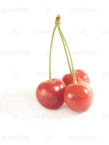 Ягоды черешни на ветке на белом фоне