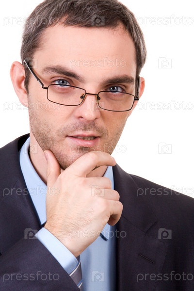 Портрет предпринимателя с рукой у подбородка