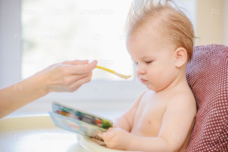 Мама кормит малыша кашей