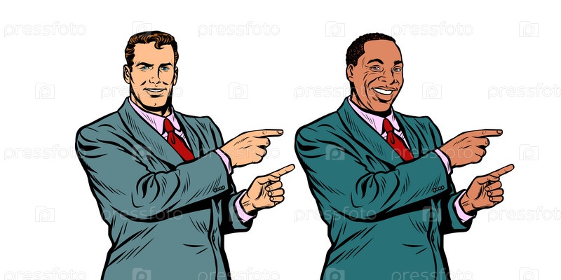 Белый и черный бизнесмены, указывая в сторону