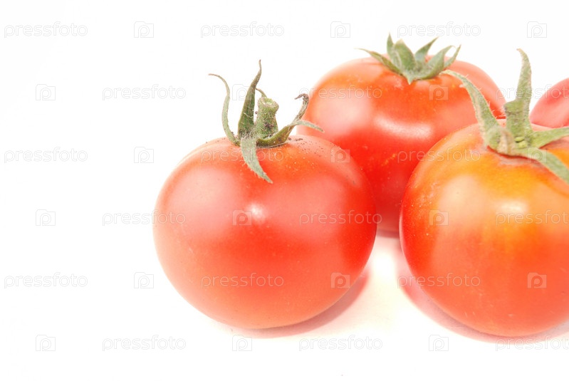 Спелые помидорки на белом фоне