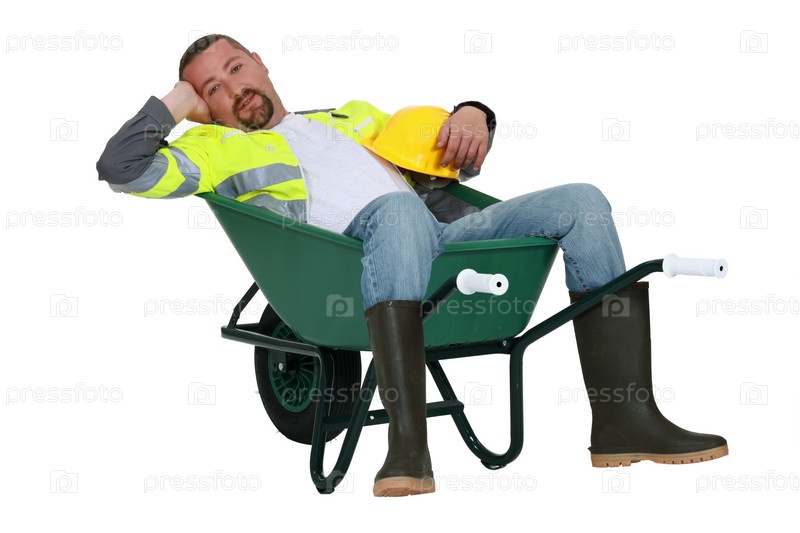Ленивый рабочий упал в тачку