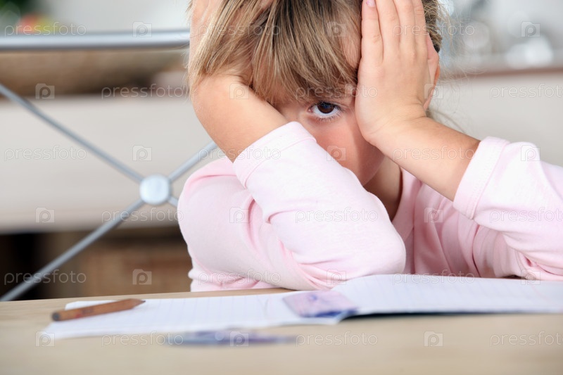 Девочка скучает за домашним заданием