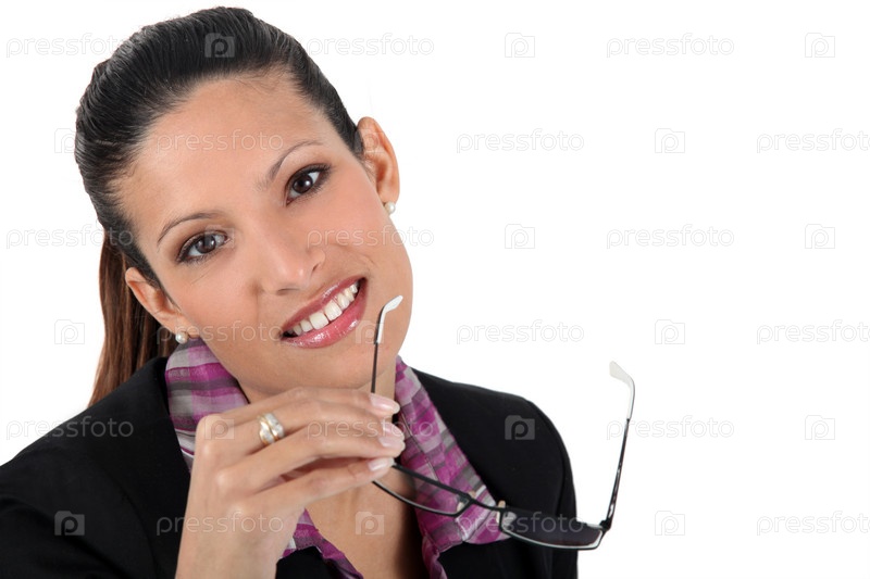 Женщина с очками в руке