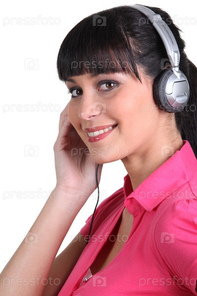 Молодая брюнетка с наушниками