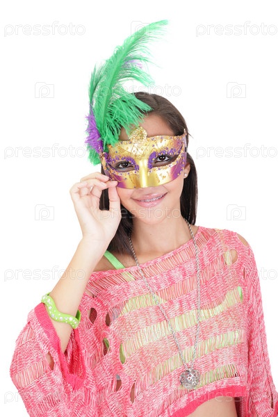 Портрет привлекательной девушки-подростка в карнавальной маске