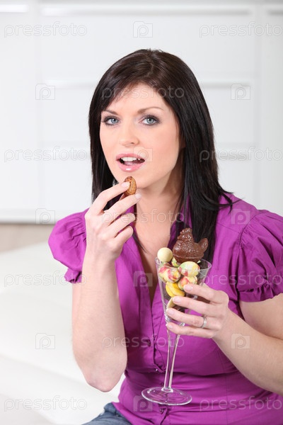 Женщина наслаждается шоколадом