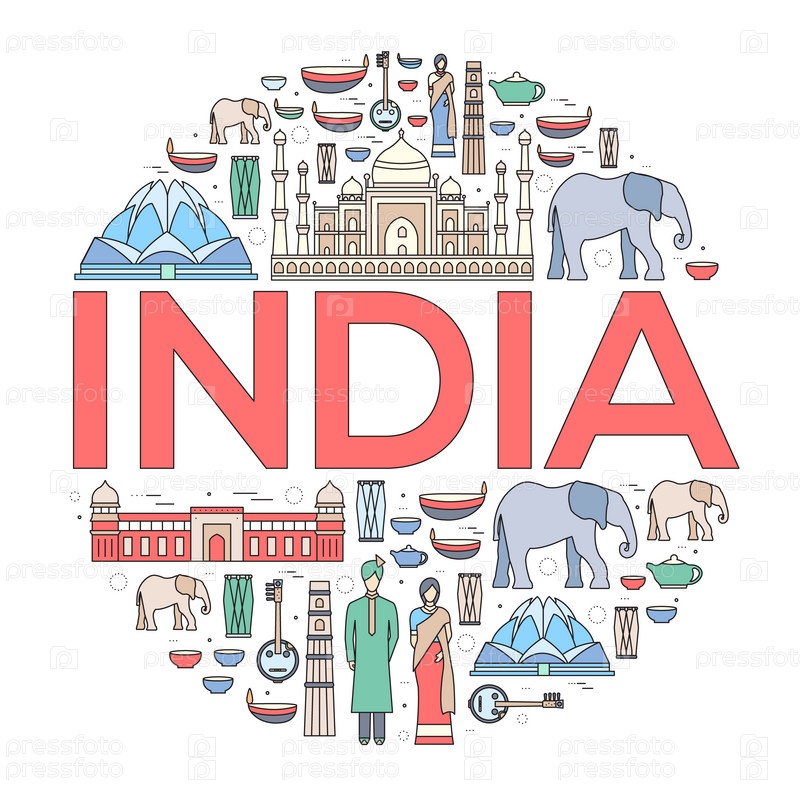 Страна Индия путешествие отпускное руководство по товарам, местам и особенностям. Набор архитектуры, моды, людей, предметов, концепции фона природы. Дизайн шаблонов инфографики для веб-и мобильных устройств на тонких линиях