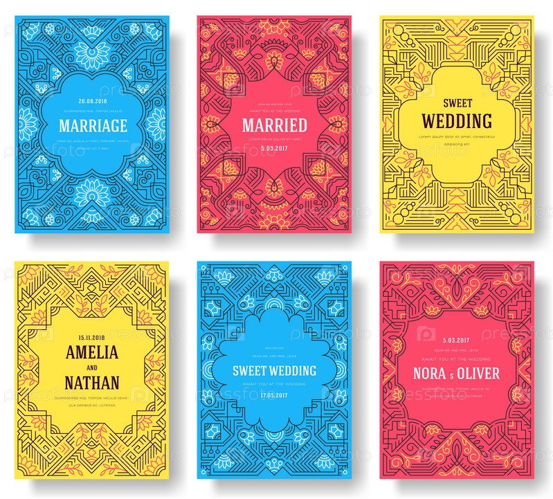 Набор художественных тонких линий. Контурный шаблон флайера, журналов, плакатов, обложки книг, баннеров. Хипстер Декоративная ретро-приветственная карточка или дизайн приглашения. Иллюстрации оформления современные страницы с типографией