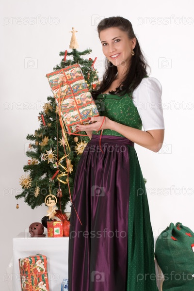 Баварская девушка с рождественским подарком