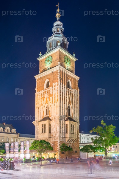 Зал башни на главной площади Кракова в Польше вечером