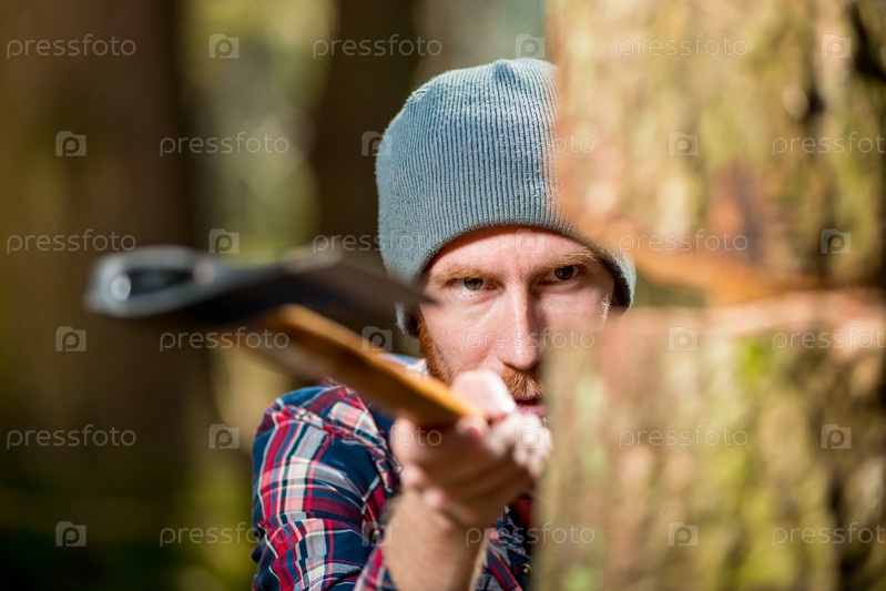 Хипстер-лесоруб, вырезающий древесину, сосредоточьтесь на глазах