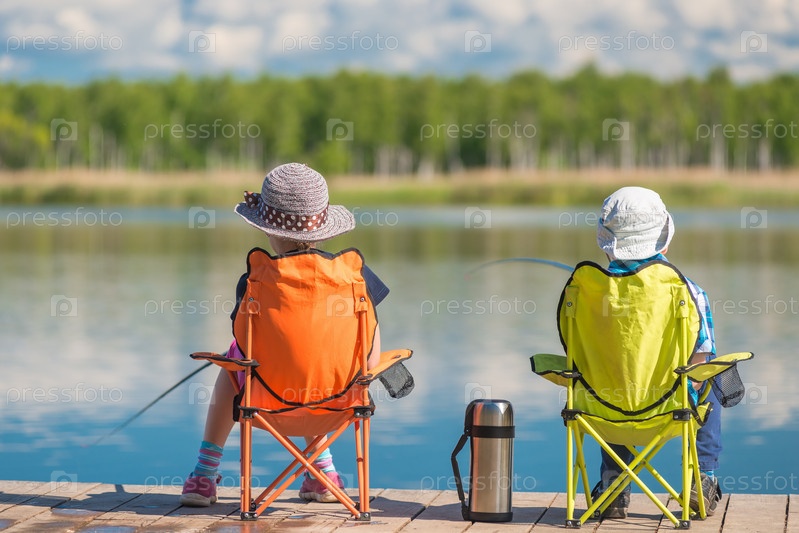 Дети проводят выходные на рыбалке в озере