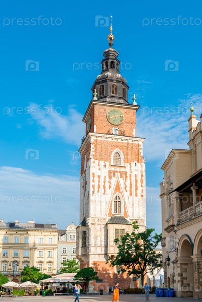 Зал башни на главной площади Крака в Польше вертикальная фотография в солнечный день