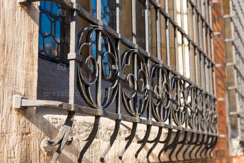 Близкий план металлического гриля на окне здания на улице