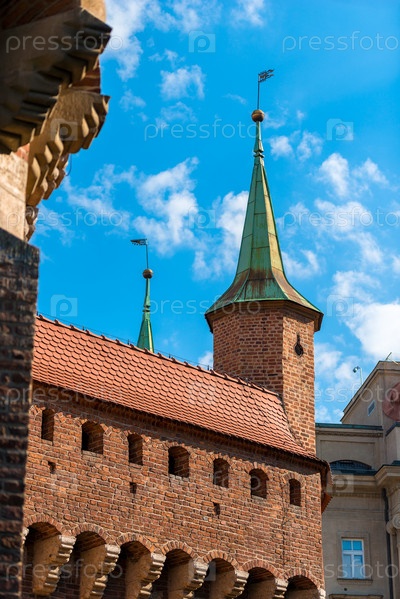 Башня Барбакана на голубом небе, Краков, Польша