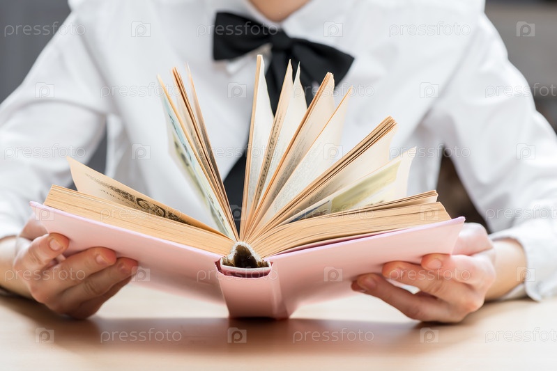 Интересный роман в руках красивых крупных планов