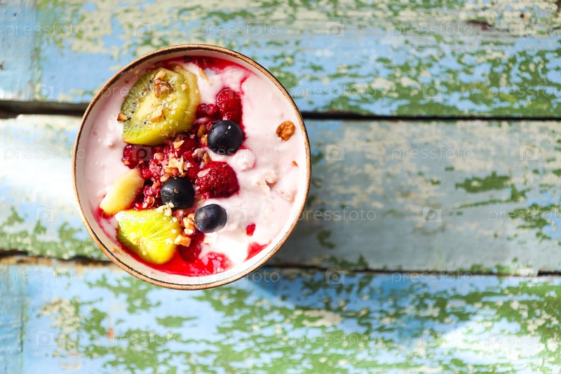 Чашка гранолы с йогуртом и фруктами