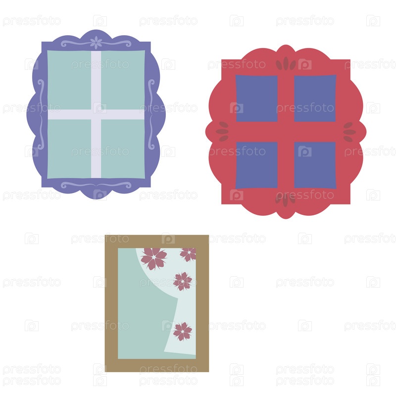 Окна с деревянными разноцветными фигурными рамами с резьбой