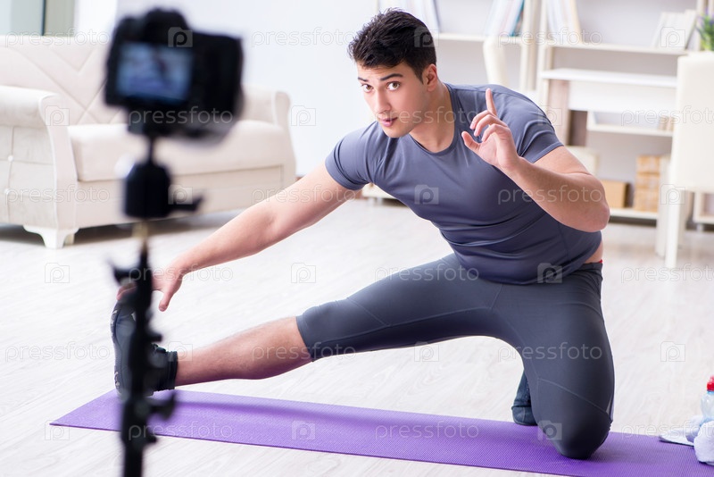Спорт и здоровье блоггер записывает видео в спортивной концепции