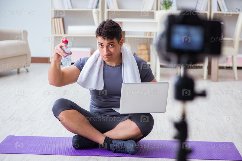 Спорт и здоровье блоггер записывает видео в спортивной концепции