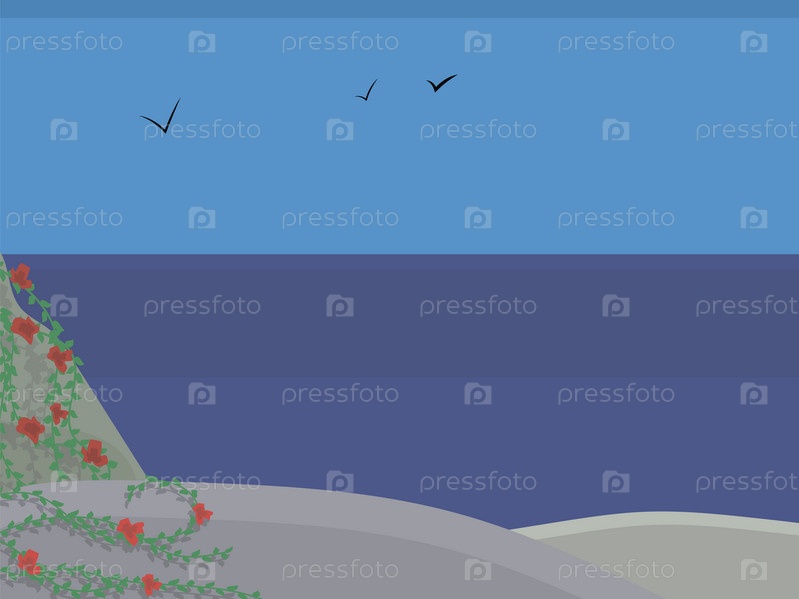 Морской пейзаж с красными цветами