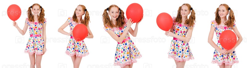 Молодая женщина с красным воздушным шаром изолирована на белом