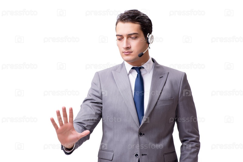 Сотрудник колл-центра изолирован на белом фоне