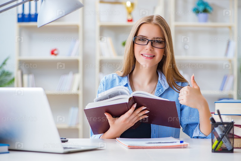 Молодая студентка-подросток готовится к экзаменам дома