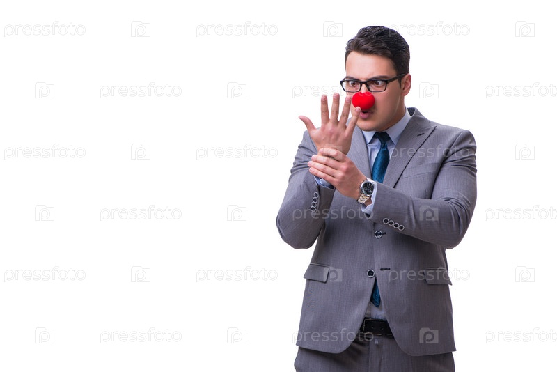 Забавный бизнесмен-клоун изолирован на белом фоне