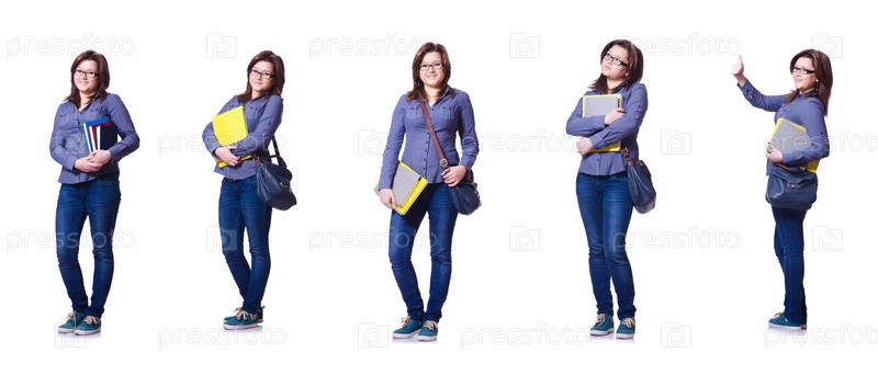 Девушка-студент с книгами на белом