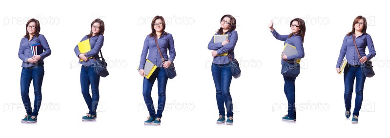 Девушка-студент с книгами на белом