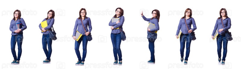Девушка-студент с книгами на белом