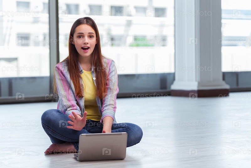 Молодая девушка серфирует в интернете на ноутбуке