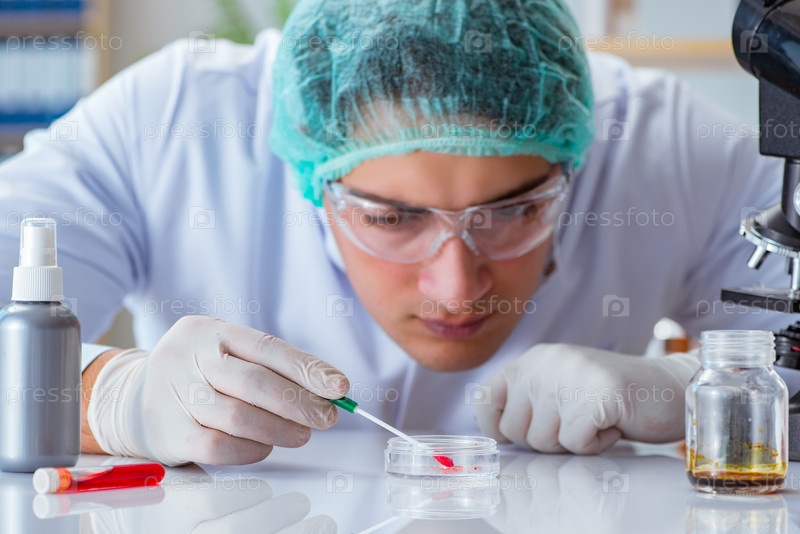 Молодой врач, работающий над анализом крови в лабораторной больнице