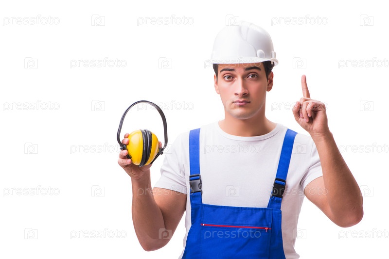 Строительный рабочий изолирован на белом фоне