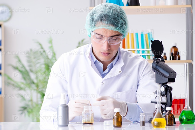 Концепция фармацевтической промышленности с ученым в лаборатории