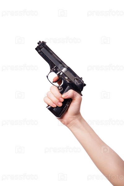 Рука с пистолетом изолирована на белом