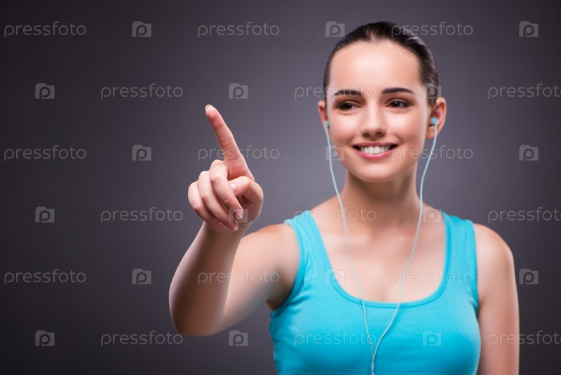 Женщина в спортивной концепции, нажимающая кнопки