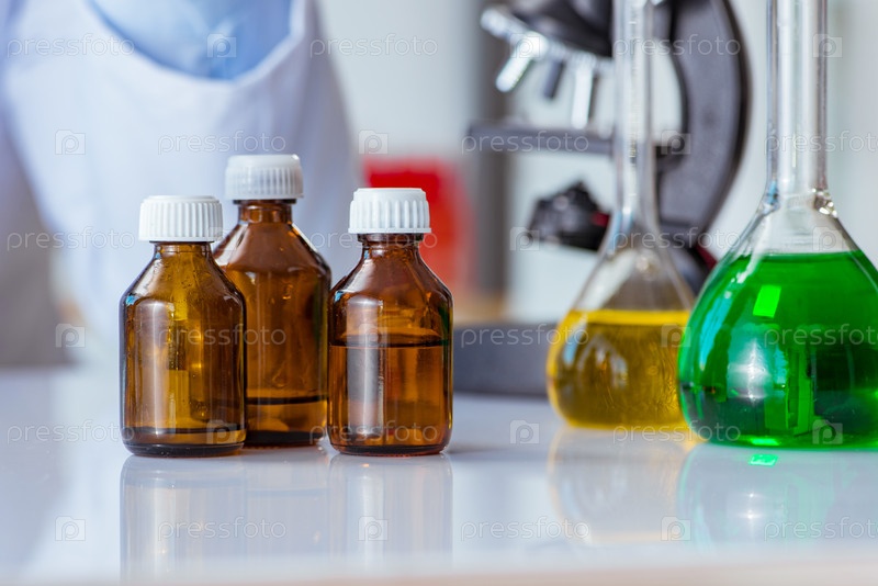 Различные химические растворы в лаборатории