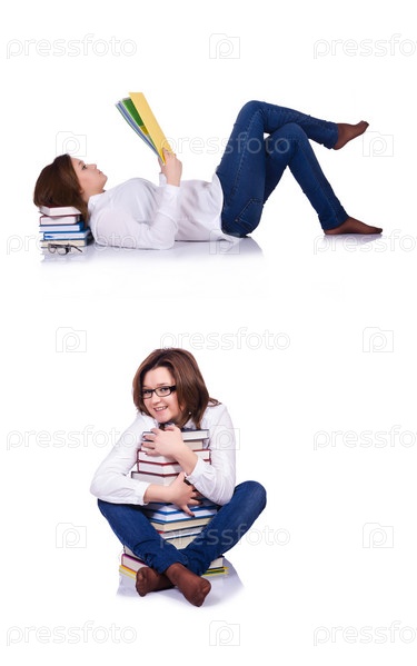 Студент с книгами, изолированными на белом