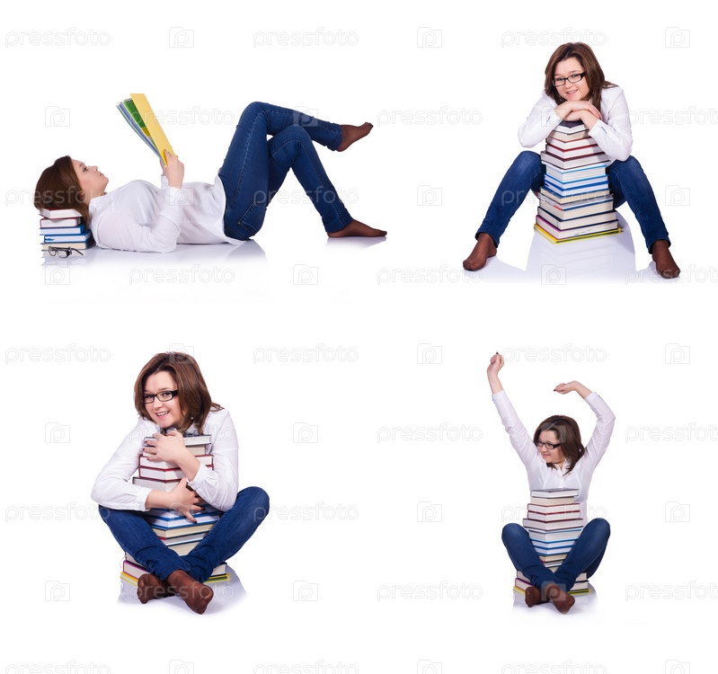 Студент с книгами, изолированными на белом