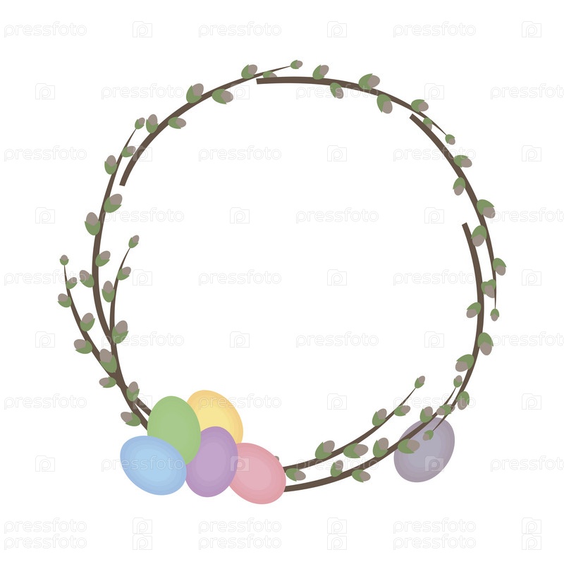 Венок с ивами и пасхальные разноцветные яйца