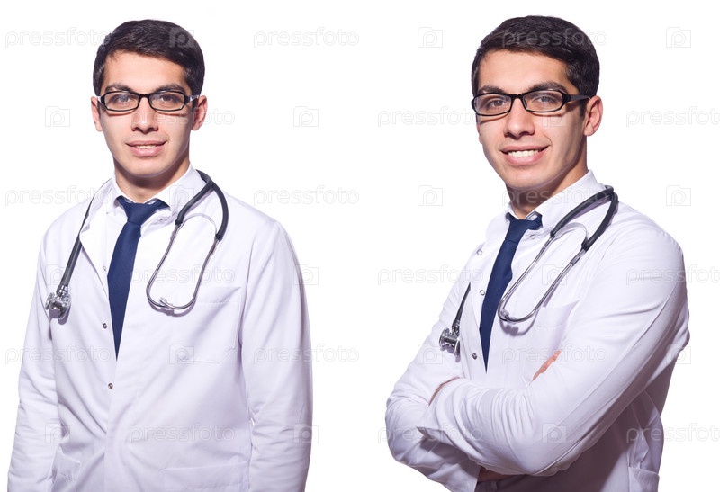 Молодой врач-мужчина изолирован на белом