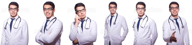 Молодой врач-мужчина изолирован на белом
