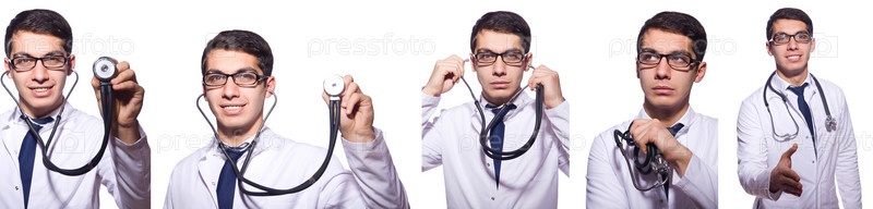 Молодой врач-мужчина изолирован на белом
