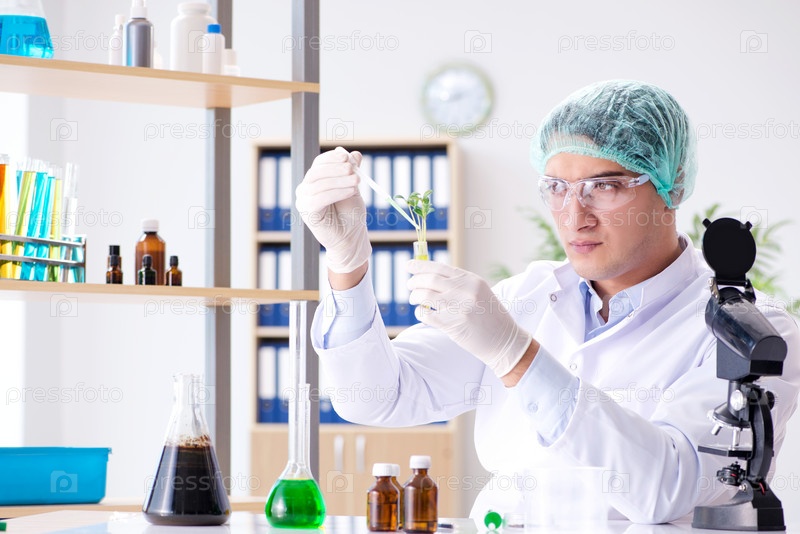 Концепция биотехнологии с ученым в лаборатории