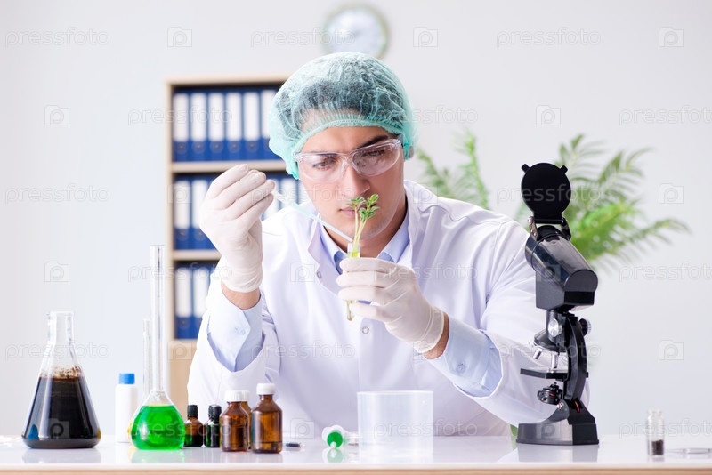 Концепция биотехнологии с ученым в лаборатории