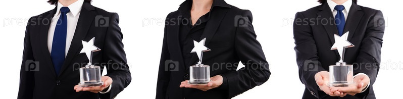 Бизнесмен с наградой 'Звезда' изолирован на белом