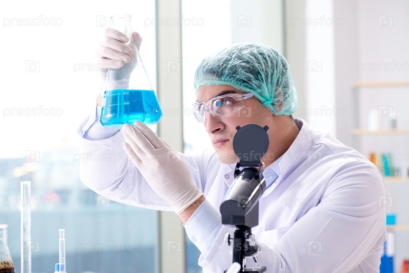 Молодой ученый работает в лаборатории